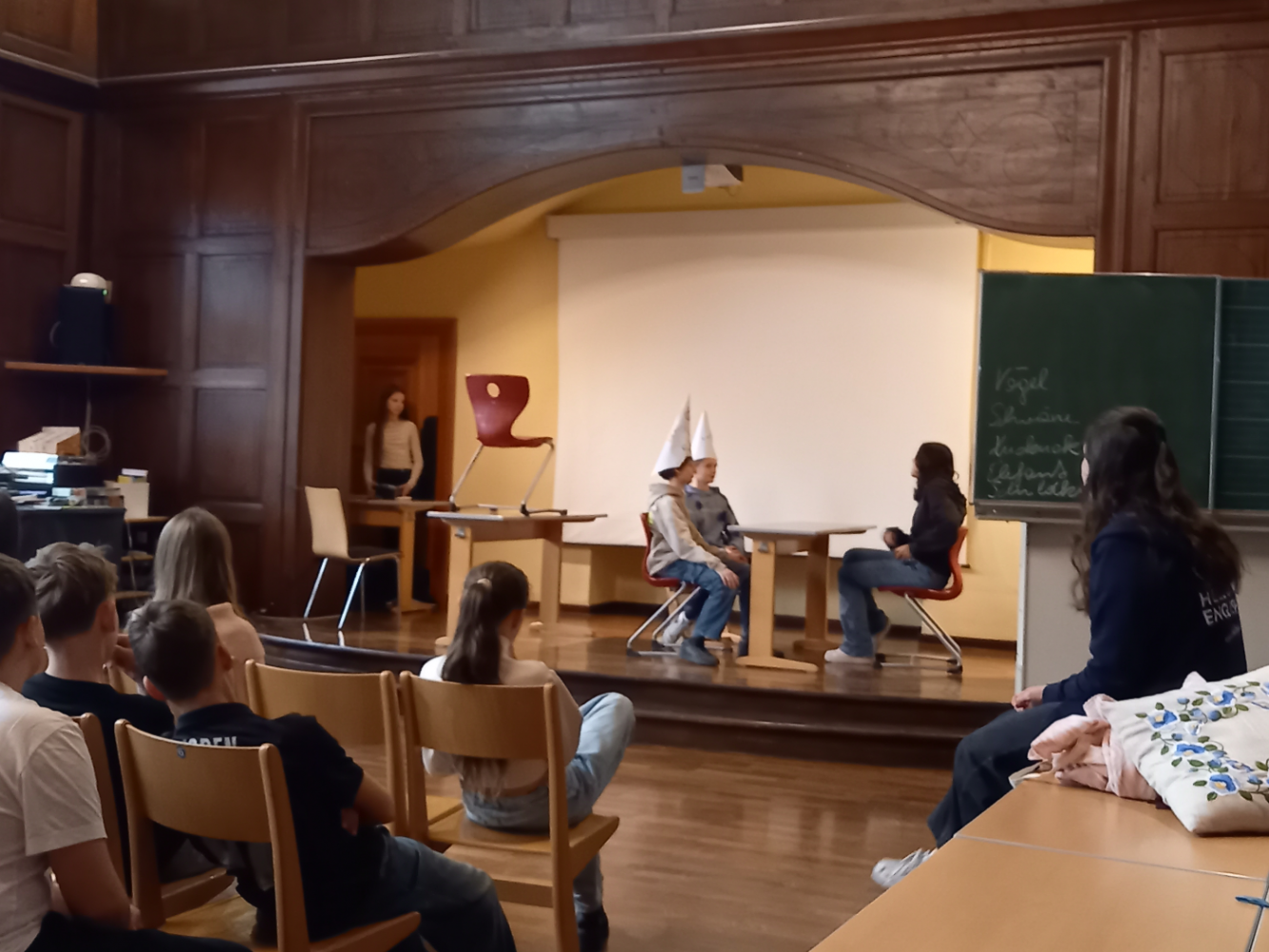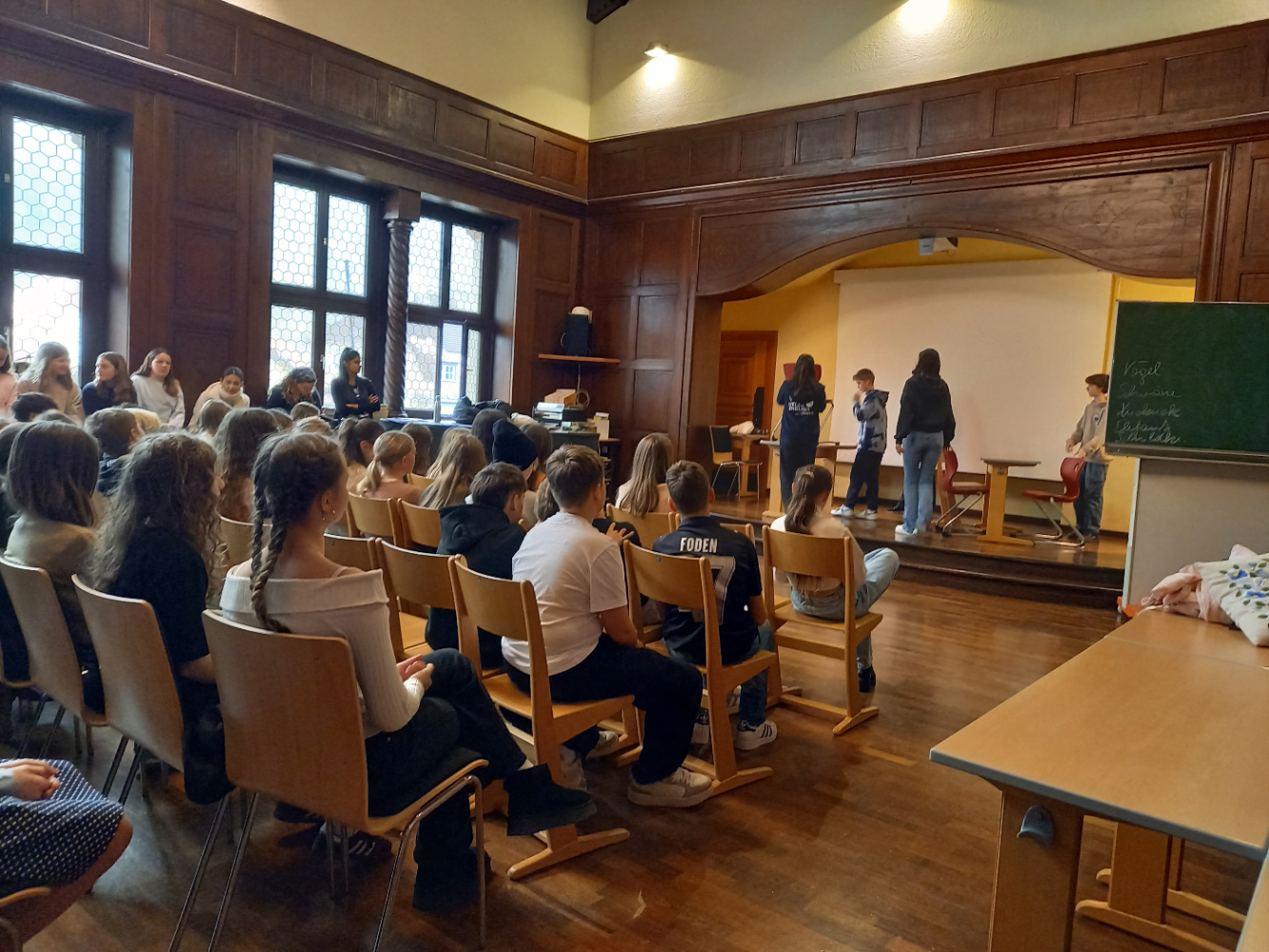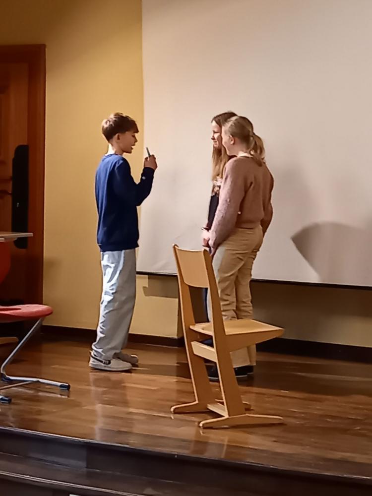 In der Woche vor den Semesterferien war, wie schon in den Jahren davor, ein Team von sechs Native Speaker der Global English Teaching Academy in unseren 3. Klassen zu Gast. Von Montag bis Donnerstag wurde in den klassenübergreifenden Gruppen ausschließlich Englisch gesprochen, und die Kinder bekamen die Gelegenheit, auf spielerische Weise ihren Wortschatz zu erweitern und ihre speaking skills zu trainieren. Durch viele interaktive Übungen, Gruppenspiele und der Aufgabe, Sketches selbst zu schreiben, wurden die Schülerinnen und Schüler dazu ermutigt, ihr Englisch zu erproben. Am Donnerstag wurden dann die selbst geschriebenen Sketches vor den anderen Gruppen aufgeführt. Keine ganz so leichte Aufgabe für so manche Schüler:in, aber in der Gruppe war es dann doch ein tolles Erlebnis, das heftig beklatscht wurde. Laut feedback der Schüler:innen haben die Projekt-Tage sehr großen Spaß gemacht. Die vier Tage haben die Schüler:innen auch dahingehend bestärkt, dass sie bereits in der dritten Klasse ihre Englischkenntnisse spontan und in der Praxis anwenden können.