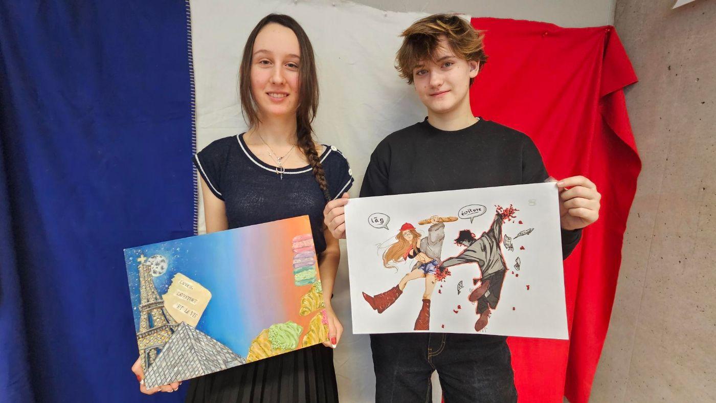 Drei Schülerinnen aus dem Wahlpflichtfach Französisch haben am österreichweiten Malwettbewerb „Französische Aussprache sichtbar machen“ der Universität Wien teilgenommen. Ziel des Wettbewerbs ist es, die Besonderheiten der französischen Aussprache kreativ und anschaulich darzustellen und Sprache einmal aus einer künstlerischen Perspektive zu betrachten. Dies ist besonders für Anfänger:innen interessant, birgt doch das Französische zu Beginn einige Hürden in seiner Aussprache.