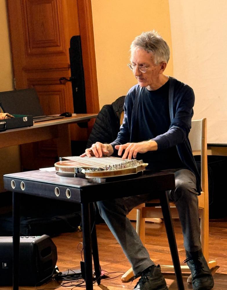 Der Vortrag bestand nicht nur aus musikalischen Darbietungen, sondern auch aus profunden Erklärungen über Herkunft des Instrumentes, Spielarten und Techniken, sowie geschichtlichen Zusammenhängen.